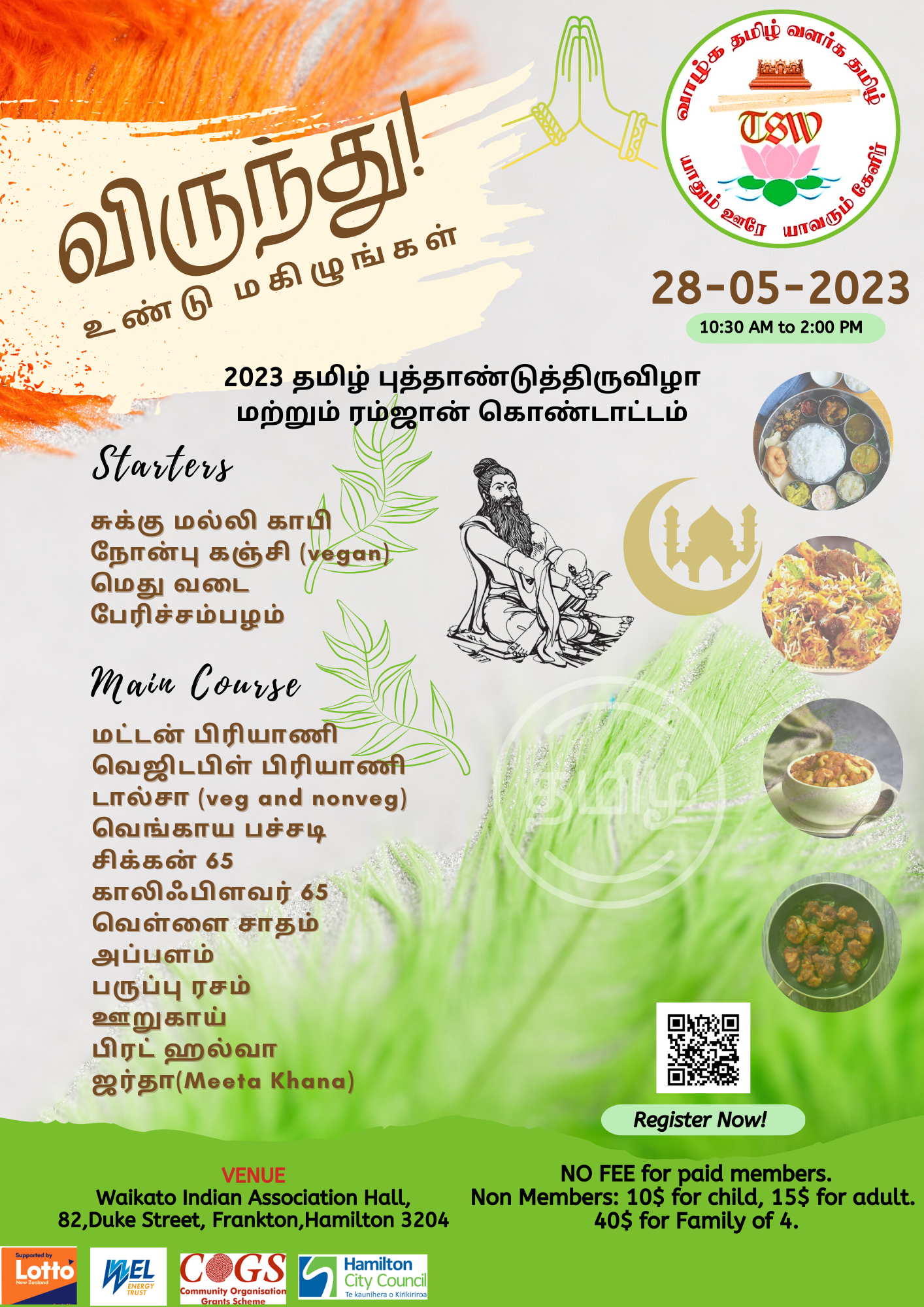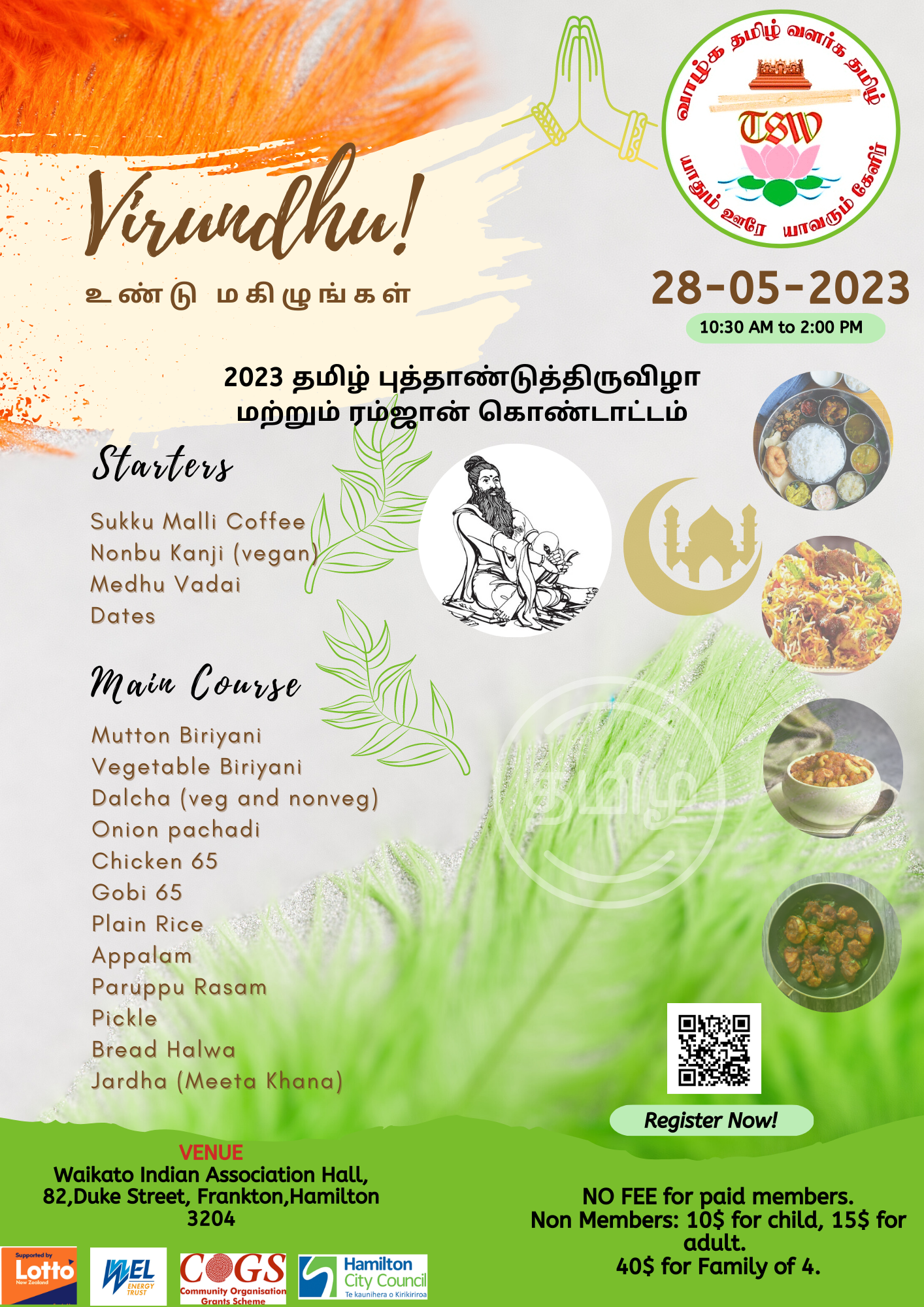 Tamil Society Waikato is celebrating Tamil New Year and Ramadan on Sunday, 28th May.