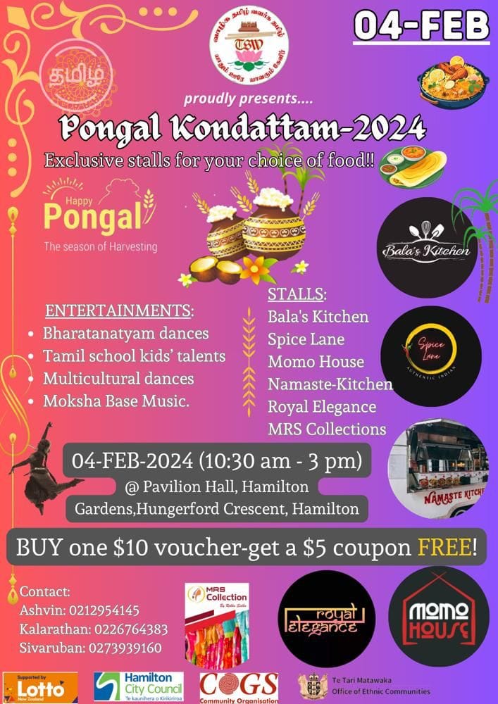 Pongal Kondattam in Pavilion / Central Court, Hamilton Gardens on Sunday 4th February 2024 at 10.30 AM